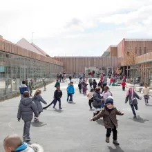 Le groupe scolaire Aimé Césaire est un des équipements structurants de l’écoquartier Clause-Bois Badeau. Il prend place en partie dans l'ancienne ferme du Mesnil réhabilitée et en partie en construction neuve, pour accueillir les enfants du quartier. Cet équipement, doté d'une salle polyvalente, profite également aux habitants. Le bâtiment de plus de 4 000 m² s’intégre dans la démarche de développement durable du quartier.
