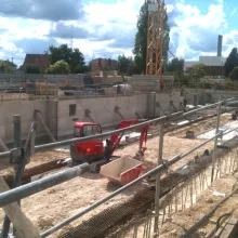 Fin avril 2016, la coque brute de la médiathèque a été livrée par le promoteur Kaufman and Broad à Cœur d’Essonne Agglomération.